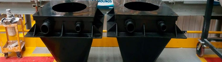 En polímeros de alta densidad y en acero inoxidable.